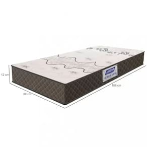 Estrutura: 100% espuma densidade 20 Revestimento Superior: Em tecido plano poliesterRevestimento Lateral: Tecido plano + espuma laminada D20 + TNT poliesterRevestimento Inferior: Em tecido plano poliesterSuporta Peso: Suportado de 50 kilosIndicado: Para cama de solteiro com largura de 90 cm e cama box com largura de 88 cmCertificado: SIM, pelo INMETRO Estampa: Poderá haver alteração no desenho do revestimento superior e inferior de acordo com o lote de fabricaçãoDimensões do produto