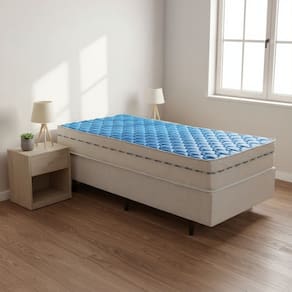 Caracteristicas: Molas ensacadas individuais, bitola 1.7 mm, media 118 molas/m Espuma de suporte D-26kg/m, acabamento D-20kg/m, borda perimetral D-26kg/m Tampo em malha 100 poliester, bordado com espuma flexivel, TNT e base antiderrapante Suporta ate 75 kg