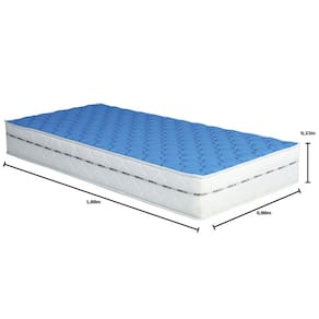 Produzido segundo os rigorosos padroes internacionais do INMETRO, o colchao e revestido em poliester e TNT, predominando a cor branco/azul, ideal para o quarto das criancas.