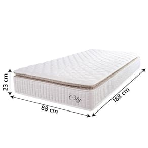 Colchão Solteiro Molas Ensacadas City Pillow Top 88x188x23cm Branco/bege Hellen Branco/bg Descubra o extremo conforto do Colchão City, projetado para elevar a qualidade do seu sono proporcionando uma experiência única de descanso! Conta molas ensacadas de alta qualidade que trabalham em conjunto proporcionando resistência e aconchego na hora do descanso. Além de possuir pillow top que é uma camada extra de conforto proporciona uma experiência de sono inigualável. Invista na qualidade do seu sono e experimente garantia total de descanso e qualidade de vida! Pesos e Dimensões MEDIDAS: [ A ] = 23 cm [ L ] = 88 cm [ P ] = 188 cm PESO SUPORTADO: 110 kg por pessoa PESO: 14,80 kg Características MODELO: Colchão Solteiro Molas Ensacadas City Pillow Top 88x188x23cm MARCA: Hellen COR: Branco / Bege REVESTIMENTO SUPERIOR E LATERAL: Tecido em poliéster Branco e Bege que permite melhor ventilação, proporcionando conforto e sensação agradável ao toque. REVESTIMENTO INTERIOR: Molejo estrutural em molas ensacadas individualmente, que permitem que o colchão suporte até 110kg por pessoa, oferecendo conforto e estabilidade durante o sono. REVESTIMENTO INFERIOR: Tecido antiderrapante PILLOW TOP: Sim, oferecendo ainda mais sensação de conforto ESPUMA: D20 POSSUI EPS: Sim ITENS INCLUSOS: 1 Colchão de 0,88m GARANTIA: 12 Meses pelo Fabricante A Esplanada Móveis se responsabiliza pela entrega dos produtos adquiridos até a porta de entrada ou portaria do endereço indicado, se a portaria do condomínio permitir, as entregas são efetuadas no piso térreo e é de responsabilidade do cliente a locomoção da mercadoria até seu apartamento ou casa. Confira as dimensões do produto e certifique-se de que estão adequadas aos elevadores, portas e corredores do local da entrega. Não fazemos a montagem, desmontagem do produto e/ou portas e janelas, transporte pela escada ou içamento pelo lado de fora do prédio. Não está incluso no serviço de entrega o deslocamento até o interior do apartamento, com ou sem elevador, ou deslocamento em locais de difícil acesso como escadarias. MEDIDAS:: [ A ] = 23 cm [ L ] = 88 cm [ P ] = 188 cm | PESO SUPORTADO:: 110 kg por pessoa | PESO:: 14,80 kg | MODELO:: CITY SOLTEIRO | MARCA:: Hellen | COR:: Branco / Bege | REVESTIMENTO SUPERIOR E LATERAL:: Tecido em poliéster Branco e Bege que permite melhor ventilação, proporcionando conforto e sensação agradável ao toque. | REVESTIMENTO INTERIOR:: Molejo estrutural em molas ensacadas individualmente, que permitem que o colchão suporte até 110kg por pessoa, oferecendo conforto e estabilidade durante o sono. | REVESTIMENTO INFERIOR:: Tecido antiderrapante | PILLOW TOP:: Sim, oferecendo ainda mais sensação de conforto | ESPUMA:: D20 | POSSUI EPS:: Sim | ITENS INCLUSOS:: 1 Colchão de 0,88m | GARANTIA:: 12 Meses pelo Fabricante | AVISO:: A Esplanada Móveis se responsabiliza pela entrega dos produtos adquiridos até a porta de entrada ou portaria do endereço indicado, se a portaria do condomínio permitir, as entregas são efetuadas no piso térreo | CLASSIFICAÇÃO DO COLCHÃO: Solteiro Cor: BRANCO/BG