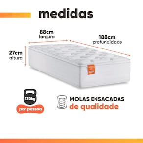 MODELO: Colchão Solteiro Molas Ensacadas Real 88x188x27cm