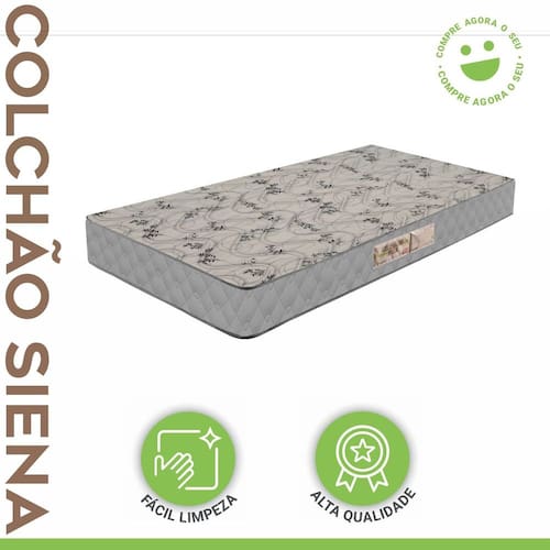 A solução para suas noites insones chegou. O colchão Siena com molas ensacadas foi projetado com alta qualidade para garantir o suporte ideal para o seu corpo com máximo de conforto. Durma profundamente e acorde revigorado. Ambiente Principal: Quarto Antiácaro: Não Antialérgico: Sim Antifungo: Não Certificado: Produto certificado conforme Portaria 75 de 05/02/2021 - Certificação Compulsória de Colchão - Desempenho OCP - TS4 0134 codigo_ean: 7890372485955 Comprimento: 188 cm Cor: Prata Cor do Produto: Prata Densidade da Espuma: Espuma D-80 Informações Complementares: Produto Uniface Itens Inclusos: 1 Colchão e Certificado de Garantia e Uso Linha ou Coleção: Série Siena Marca: Paropas by Ecosono Nível de Conforto: Firme Origem do Produto: Nacional Peso: 16.0000 Pillow: Não possui Possui Certificado: Sim Possui Pillow: Não Precisa virar: Sim Recomendações de Uso, Manutenção e Limpeza: Recomendações indicadas no manual de garantia e uso Revestimento: Malha 100% Poliéster Tamanho: Solteiro Tipo de espuma: Espuma Poliuretano Tipo de Tecido: Poliéster Tipo do Colchão: Espuma Marca: Paropas by Ecosono