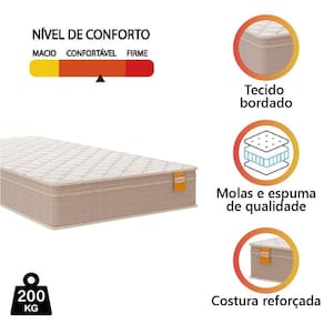 MODELO: Colchão Solteiro Molas Qatar 88x188x22cm Suporta Até 200 Kg Por Pessoa