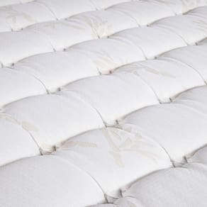 Com estrutura que inclui molas ensacadas individualmente, o Colchão de Molas oferece suporte uniforme e silencioso, além de bordas em espuma de alta resistência com revestimento em feltro, garantindo estabilidade. O enchimento interno é composto por lâminas de espumas D28 e D20, resultando em um apoio confortável e bem distribuído. O tecido das laterais, em poliéster com bordado zig-zag, confere um toque de sofisticação, enquanto a faixa lateral com aria 3D favorece a ventilação constante, preservando a frescura do Colchão Box. No tampo superior, a malha de poliéster conta com uma camada de espuma D24 hiper macia, e o acabamento em debrum reforça a durabilidade e o visual sofisticado do produto. Com pillow top one face e revestimento em poliéster.