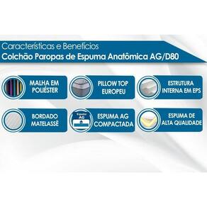 Colchão Solteiro Espuma Compact AG 65 / D33 / Confort Euro Pillow Gray (88x188x26) - Paropas