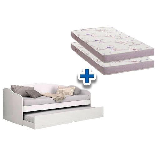 Colchão Solteiro Physical Ortobom (2un) + Sofá Cama Funny Ii C/ Auxiliar Branco