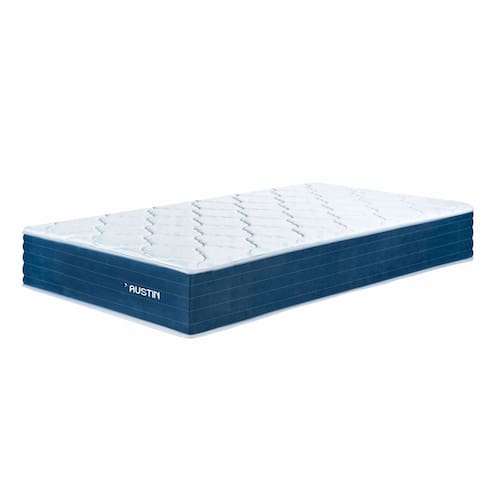 - Modelo: Austin Solteiro - Dimensões: 88 x 188 x 28 cm (largura x comprimento x altura) - Estrutura: Espuma D28 IConfort + molas ensacadas individualmente - Borda lateral: Espuma firme convencional - Revestimento: Malha - Base: Elevação rígida não flexível + espuma convencional flexível - Suporte de peso: até 120 kg por lado - Cor: Branco - Origem: Indústria Brasileira - Marca: Sonos - INMETRO 015 236/2024