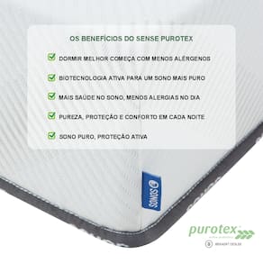 O tecido com tecnologia Purotex atua diretamente na melhoria da higiene do sono. Por meio de probióticos ativos de base biológica, o revestimento ajuda a reduzir a exposição a alérgenos comuns, como ácaros e partículas microscópicas presentes no ambiente da cama. Essa ação contribui para um colchão mais limpo e equilibrado, tornando o tecido hipoalergênico e ideal para pessoas sensíveis ou que valorizam um ambiente de descanso mais saudável.