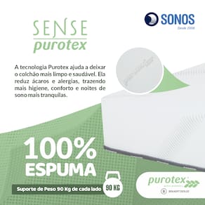 O Colchão Sonos Sense Purotex Solteiro 88x188x19cm foi desenvolvido para quem busca conforto estável e sensação de maciez controlada. Sua estrutura é composta por 100% espuma D28, oferecendo apoio adequado ao corpo, boa adaptação ao peso e conforto contínuo ao longo da noite.