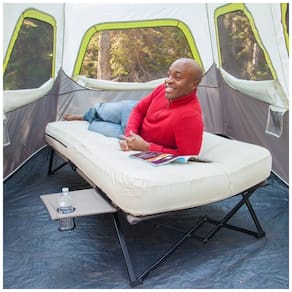 Colchão e berço de ar twin portáteis, ideais para camping e convidados Recursos do colchão Sistema de bobina ComfortStrong para suporte e conforto O sistema AirTight com válvula de trava dupla evita que o colchão vaze O berço de aço resistente suporta até 136kg e pode acomodar a maioria das pessoas até 15cm altura Inclui uma bomba operada por bateria 4D baterias vendidas separadamente A válvula Double Lock é vedada duas vezes para evitar vazamentos, a tampa costurada mantém o colchão de ar no lugar, estrutura de aço dobrável resistente Marca: Não Informado