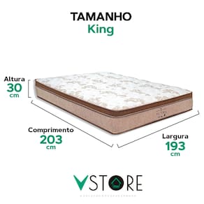 A tecnologia que a sua casa merece está na V-Store!O colchão Victory Solteiro da V-Store é a escolha ideal para quem busca conforto e qualidade em todas as noites de sono. Com um toque macio que garante aconchego e relaxamento, ele conta com o sistema de molas ensacadas, proporcionando suporte adequado e independência de movimentos, permitindo uma experiência de descanso sem interrupções. O Pillow Euro Pillow oferece um conforto adicional, proporcionando suavidade na parte superior do colchão.Este modelo também conta com EPS, garantindo maior resistência e durabilidade. Com um peso máximo recomendado de 150 kg por pessoa, o colchão Victory é robusto e resistente, ideal para quem busca um produto durável. Além disso, ele possui proteções contra ácaros, fungos, mofo e alergias, promovendo um ambiente de sono mais saudável e confortável. A V-Store oferece uma garantia de 12 meses, proporcionando ainda mais segurança e tranquilidade na sua compra. Com o colchão Victory, você vai transformar seu descanso, desfrutando de uma noite de sono reparadora e de alta qualidade.CARACTERÍSTICAS DO PRODUTOModelo: VictoryMarca: V-StoreTamanho: KingDimensões: 193x30x203 (Largura x Altura x Comprimento)Conforto: MédioSistema: Molas EnsacadasPillow: Euro PillowPeso Máximo recomendado: 150 kg (Por pessoa)Proteções: Antiácaro, antialérgico, antifungo, antimofoGarantia: 12 Meses (Espuma) / 10 anos ( Conjunto de Molas Ensacadas)