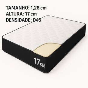 - Proteções: Antiácaro - Antialérgico - Antifungo - Antimofo;- Acabamento: Bordado em Matelassê;- Matéria prima: Espuma/Bordado;- Densidade: D45;- Peso máximo recomendado: até 100kg (por pessoa);- Garantia: 3 meses;- Dimensões do produto (altura x largura x comprimento) : 17x128x188cm;