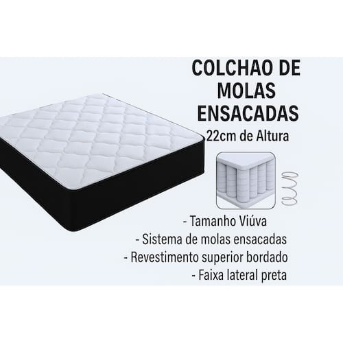 O Colchão tem sua estrutura composta por molas ensacadas individualmente, proporcionando conforto e suporte necessário para a parte lombar da coluna e é altamente resistente e confortável, proporcionando melhor sustentação e durabilidade ao produto, o tampo é bordado, que entrega uma camada extra de conforto. Seu revestimento é com tratamento antialérgico e antiácaro. Esse é o colchão ideal para toda a família.