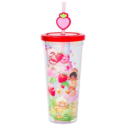 Silver Buffalo Bears and Strawberry Shortcake With Cheer, Funshine, Friend, Flor de Laranjeira e Limão Merengue Copo Frio de Plástico Iridescente com Tampa e Canudo, 680 g