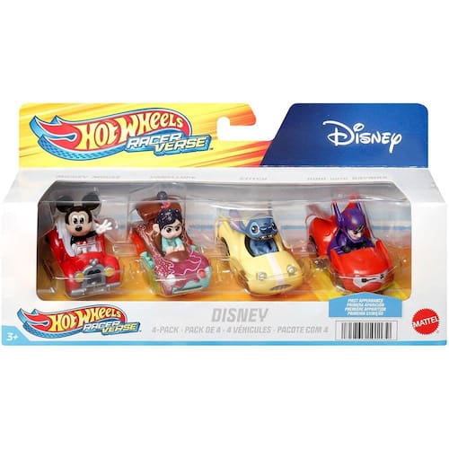 - Adicione alguns personagens à pista Hot Wheels com um pacote de 4 veículos Hot Wheels RacerVerse Disney!