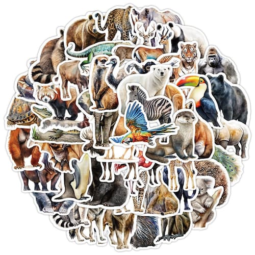 Material: papel e vinil Peso: 30-60 g Tamanho: 3-6 cm Quantidade: 50 unidades Wildlife Animal Collection 50 peças de adesivos de vinil à prova d'água com animais realistas de zoológicos e safáris, como leões, tigres, zebras, girafas, papagaios, gorilas, elefantes e muito mais. Duráveis e impermeáveis Decalques de vinil de alta qualidade que são à prova d'água, resistentes ao sol e antiarranhões, garantindo uma adesão duradoura e fácil remoção sem deixar resíduos. Decoração criativa Perfeita para personalizar laptops, garrafas de água, telefones, skates, diários, álbuns de recortes, capacetes, iPads, malas e outras superfícies lisas. Diversão e educação Ideal para brincadeiras criativas para crianças, recompensas em sala de aula, projetos de bricolage e para adolescentes ou adultos que gostam de arte da vida selvagem e designs realistas de animais. O pacote econômico inclui 50 adesivos exclusivos de animais que não se repetem, cada um com 5 a 8 cm de tamanho, oferecendo uma grande variedade para decorar itens pessoais ou compartilhar com amigos.