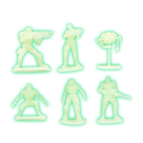 - Design GITD: os bonecos vêm em uma bolsa de farmácia e apresentam 6 bonecos exclusivos que brilham no escuro!