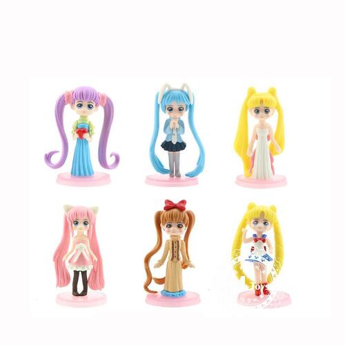 Nome: 6 peças de brinquedo Sailors Moonss Figure Toy Anime Doll Material do modelo: PVC Tamanho: 7,5 cm Peso: 0,15 kg Função: suprimentos de coleção, ornamentos de vida, embalagem pequena: 6 x Figura