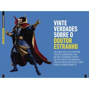 Toda a magia do Doutor Estranho é abordada neste volume da coleção Figurões das HQs, que reúne informações sobre o personagem nos gibis e no cinema. O livro compila 20 fatos importantes sobre o Mestre das Artes Místicas ao longo de sua trajetória de mais de meio século, e desvenda desde os bastidores de sua criação até acontecimentos atuais dos gibis e do Universo Cinematográfico da Marvel. Saiba como o herói foi criado, quem é seu verdadeiro amor, qual é a fonte de seu poder e seus principais artefatos. O livro traz ainda um perfil do Mago Supremo e uma lista de histórias essenciais a quem deseja compreender por que o Doutor Estranho é um personagem tão querido quanto poderoso.