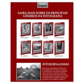 Fotojornalismo – A busca da notícia por meio de imagens é um desafio desde o início do século 20. Saiba quem foram os pioneiros no gênero, os que se destacaram na história, como Robert Capa, e os 10 fotógrafos brasileiros que servem como uma referência para os profissionais mais jovens. Sobre a coleção A coleção Gêneros da Fotografia se propõe a apresentar de forma objetiva fotógrafos que estão entre as principais referências históricas de oito importantes segmentos da fotografia e mostrar o trabalho de 10 profissionais brasileiros a cada volume. Os gêneros contemplados pela coleção são: Documental, Retrato, Cena de Rua, Fotojornalismo, Nu Artístico, Paisagem, Natureza e Experimental.