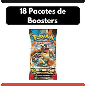 - Box especial da coleção Mega Evolução Pokémon - Contém 18 pacotes de booster com cartas variadas - Possibilidade de encontrar cartas raras e poderosas - Ideal para colecionadores e jogadores - Produto oficial Copag, com qualidade garantida