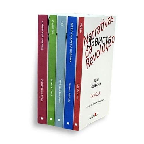 A série Narrativas da Revolução , dirigida por Bruno Barretto Gomide , da USP, traz cinco obras de ficção que dialogam diretamente com a Revolução Russa de 1917 e dão prova da diversidade de caminhos estéticos e da extraordinária força inventiva do período: Nós , de Ievguêni Zamiátin (1921), O ano nu , de Boris Pilniák (1922), Viagem sentimental , Viktor Chklóvski (1923), Diário de Kóstia Riábtsev , de Nikolai Ognióv (1925), e Inveja , de Iuri Oliécha (1927). Conjunto de livros envoltos em plástico transparente, não é BOX.