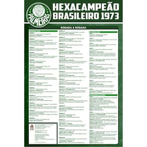 Em comemoração aos 108 anos do maior campeão brasileiro, a Online Editora, em parceria com a Sociedade Esportiva Palmeiras, traz uma grande novidade para os apaixonados pela história e conquistas do time. A Coleção Oficial Histórica do Palmeiras, é uma coletânea com 30 pôsteres dos principais títulos conquistados pelo Verdão ao longo de sua história. Você, torcedor, vai ficar por dentro de: Informações dos campeonatos; elencos; artilheiros; clubes participantes; fotos do time campeão; e muito mais! A edição Nº 10 da coleção traz o time Hexacampeão Brasileiro de 1973. Uma coleção histórica e apaixonante para o torcedor Alviverde! Não perca! Formato do pôster aberto 82,0 x 55,0 cm