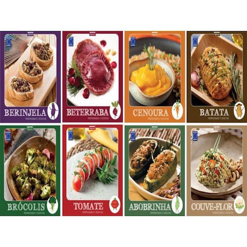 Composta por oito livros: Berinjela, Beterraba, Cenoura, Batata, Brócolis, Tomate, Abobrinha e Couve-flor, a coleção Turma dos Vegetais apresenta as propriedades nutricionais, os benefícios para a saúde e curiosidades desses alimentos. Além disso, cada livro traz 18 receitas saborosas e nutritivas, que levam o vegetal como ingrediente principal ou coadjuvante. Ean: 7898685720466