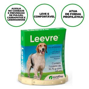 A Coleira Leevre Previne e Controla por até: 6 meses contra Carrapatos, 9 meses contra Pulgas e 6 meses contra mosquito Palha (Leishmaniose)