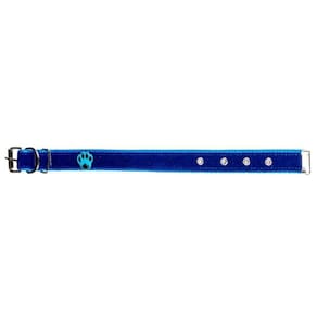 Coleira de camurça com aplique 25mm pra cachorro nicapet cor azul nº 4 Coleira para cães 25mm de camurça com aplique. Indicado para: cães de médio porte e grande porte; Estilo da peça: camurça com fecho de fivela; Material: fita de nylon revestida de camurça 25mm; Fechamento: fecho de fivela; Tamanho: 3, 4, 5, 6 e 7;