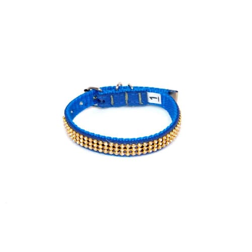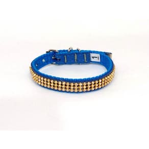 Tecido nylon com camurça todo cravejado de Strass; Costura reforçada; Fivela de Metal com regulagem de tamanho; Disponíveis cor: Azul Medidas aproximadas: 24 cm a 34 cm de circunferência do pescoço, 1,5 cm de largura, Esta coleira é uma ótima escolha para as pessoas que buscam conforte estilo para passear com seu pet. Marca: Nica pet