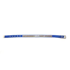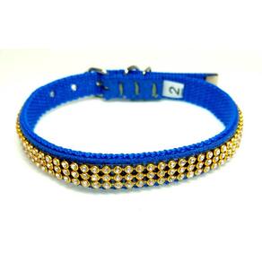 Tecido nylon com camurça todo cravejado de Strass; Costura reforçada; Fivela de Metal com regulagem de tamanho; Disponível cor azul Medidas aproximadas: 28 cm a 38 cm de circunferência do pescoço, 1,5 cm de largura, Esta coleira é uma ótima escolha para as pessoas que buscam conforte estilo para passear com seu pet. Marca: Nica pet