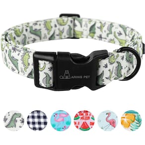 - Muito prática: a coleira de dinossauro Aring pet é muito prática e pode ser usada para enfeitar seu animal de estimação em todas as ocasiões: uso diário, sessão de fotos, feriado especial, aniversário e festa de casamento. ? A coleira de algodão para cães é adequada para todos os cães pequenos, médios e grandes.