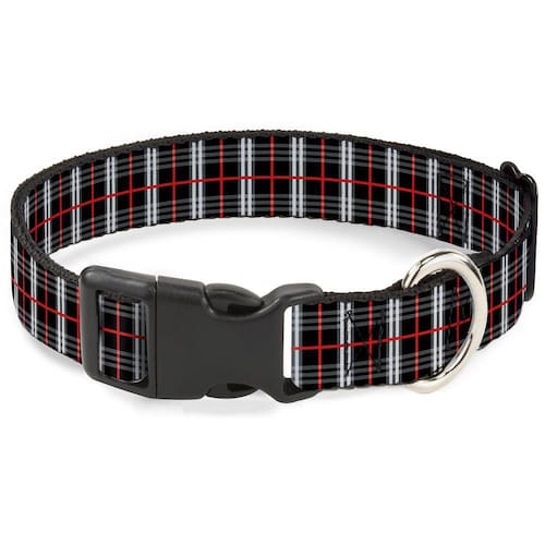 Com uma fivela de plástico sofisticada e um anel em D forte, esta coleira durável pode suportar qualquer coisa que seu cão possa servir.