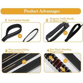 - ??Coleira para cães com absorção de choque? se o seu cão é um puxador forte, você definitivamente precisa de uma correia anti-choque indestrutível, de 1,2 m a 1,8 m. A correia elástica reduz os efeitos de puxar e torna o cão caminhar um passeio prazeroso no parque!