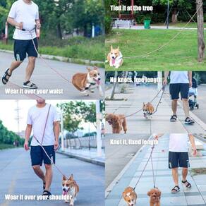-?Coleira multifuncional 8 em 1 para cães sem usar as mãos?1: Use-a por cima do ombro. 2: Use-a na cintura. 3: Use uma mão para segurar dois cães ao mesmo tempo. 4: Amarre-a na árvore para libertar suas mãos. 5: Controle de coleira curta (em ruas movimentadas, mais seguro). 6: Controle de coleira longa (ao caminhar, caminhar, correr, mais liberdade). 7: Use sozinho - Não é necessário usar a coleira Colarinho (coloque a coleira em volta do pescoço do cachorro e prenda-o com a fivela). 8: Use com sua própria coleira de cachorro (basta prender sua coleira com a fivela).