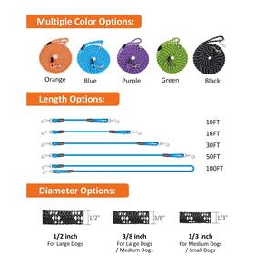 - Vários tamanhos e diâmetros. Coleira longa para cães: 3 m, 16 pés, 30 pés, 50 pés e 30 m, vários tamanhos podem atender a diferentes propósitos de treinamento. Nossa coleira para cães está disponível em diâmetro de 1/7.6 cm, 3/20.3 cm, 1/5.1 cm. O diâmetro de 1,3 cm pode atender a cães pequenos, gatos ou outros animais pequenos. O diâmetro de 3/20.3 cm e 1/5.1 cm é a melhor escolha para treinar coleiras para cães grandes ou médios.
