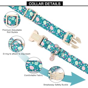 - [Material superior]: a coleira para cães feita de tecido de algodão é muito macia e não machuca a pele do seu animal de estimação. O anel em D de aço inoxidável pode ser anexado a uma coleira, etiqueta de nome