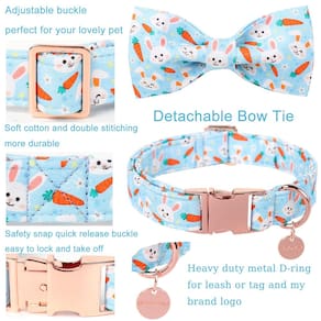 - Colar de gravata para o dia da páscoa: a coleira clássica para ovos de Páscoa é especialmente adequada para o dia da Páscoa ou primavera. A coleira para cães do Dia da Páscoa mostra melhor o charme do seu cão. A gravata borboleta de ovos de Páscoa é removível e bem feita com laços elásticos que permitem que você tire e coloque a gravata borboleta com facilidade.