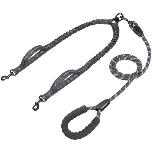 - Extensão elástica de absorção de choque: O design exclusivo de elástico ajuda a absorver o choque de movimento rápido quando utilizado com cães enérgicos e ativos, reduz a sensação de ser puxado. O comprimento do elástico pode ser estendido de 50 a 89 cm com forte força de tração, o que dá aos seus cães espaço suficiente para correr na sua frente ou ao seu lado