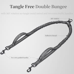 - Coleira de linha reflexiva – Tanto a correia de corda quanto o acoplador de correia elástica dupla incluem o fio refletivo, mantém você e seu cão seguros e visíveis em suas caminhadas noturnas.