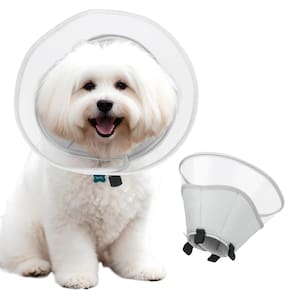 Descrição do produto: - [Excelente proteção para o seu animal de estimação]: esta coleira de cone para cães é profunda o suficiente para ser perfeita para cães pós-cirúrgicos, evitando que os animais de estimação arranhem ou lambam incisões cirúrgicas como esterilização ou castração ou outras áreas irritadas para promover a recuperação de feridas. Também pode ser utilizado para banho, aparar unhas e outros tratamentos de cuidados para evitar que animais de estimação lutem e mordam outras pessoas. - [Visão ultra grande de 360°]: a camada superior da coleira de cone macio para cães é projetada com material de PVC translúcido, visão 360° maior, visão desobstruída, evitando colisões de animais de estimação, protegendo a segurança dos animais de estimação enquanto eles podem comer, beber, dormir e brincar facilmente. Além disso, adicionamos material de PVC película protetora antiarranhões para evitar que a coleira do cone do cão seja arranhada durante o transporte e quando os animais de estimação a usam. - [Seguro e confiável]: nossos cones para cães médios têm fecho aderente aumentado para ajudar você a ajustar a circunferência do pescoço em uma ampla variedade, e também adicionaram quatro ganchos elásticos na parte inferior, que podem ser utilizados em conjunto com a coleira usada diariamente do seu animal de estimação, proteção dupla, impedindo que seu animal de estimação tire a alternativa de cone de cachorro para lamber e morder feridas. - [MACIO E FORTE]: As coleiras e cones de recuperação de cães têm design de camada dupla, a parte inferior é feita de acolchoamento e esponja Oxford, a superfície é resistente ao desgaste, à prova d'água e fácil de limpar, o material super macio deixará seu cão confortável de usar. A parte superior é feita de material de PVC de alta qualidade, que oferece suporte extra para a coleira de cone do seu cão, forte e não colapsa. Além disso, nossa coleira cônica para cães após a cirurgia é leve o suficiente para não cansar seu animal de estimação. - [Escolha o tamanho correto]: nosso cone macio para cães está disponível em uma variedade de tamanhos para cães que variam de pequeno a extragrande. As medidas podem variar, meça as dimensões do seu animal de estimação antes de comprar a coleira de cone para cães e consulte nossa tabela de tamanhos para escolher o tamanho correto! (Observação: certifique-se de que a cabeça do seu animal de estimação não seja maior do que a profundidade do cone macio para cães).
