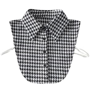 Gola falsa, gola removível em preto e branco, camisa meio falsa com estampa Houndstooth, gola sintética clássica com botões para mulheres e meninas, elegante inserção de camisa em camadas para suéter e jaqueta Material: Outro tamanho: Nenhum Peso: Nenhum