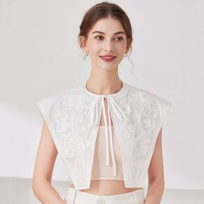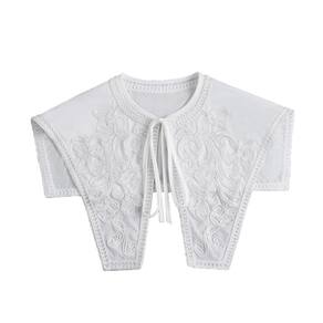 Gola falsa, gola removível, camisa meio falsa, gola de blusa, xale triangular de ombro em nuvem bordado em branco vintage, gola retrô vitoriana com acabamento em renda para mulheres e meninas Material: 70% algodão 30% poliéster Tamanho: 40 × 17 × 36 cm Peso: 100 g