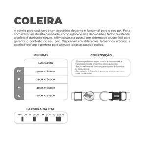 Tira em Poliéster super macio e resistente é a mesma utilizada em cintos de segurança;Tecnologia inTransfer® garante a estampa com cores mais vivas;100% ajustável ao corpo do animal (verifique a tabela e tamanhos);Fecho resistente com engate rápido e 4 pontos de segurança.- TAMANHO M Largura - 33 cm até 50 cm Largura da fita - 2 cm Ean: 0602168101164