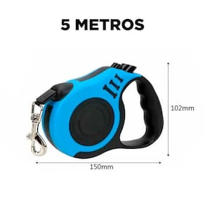 Características: 5 metros de guia para mais liberdade Segurança e controle durante o passeio Suporta até 20kg Produzido com material de qualidade Trava de segurança