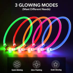- ? Iluminação eficiente e conveniente para seu animal de estimação com a coleira de cachorro LED recarregável: a coleira de cachorro de LED possui vários modos de flash, incluindo brilho constante, flash rápido, flash lento e desligado, oferecendo uso versátil. A luz da coleira é convenientemente recarregada com um mini cabo USB após o uso, tornando-a uma opção econômica e conveniente para as aventuras noturnas do seu animal de estimação.