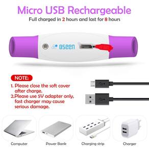 - Bateria recarregável: use o cabo micro USB incluído para conectar a unidade a um adaptador de parede (não incluído), um carregador portátil ou porta USB do computador para carregar a bateria.