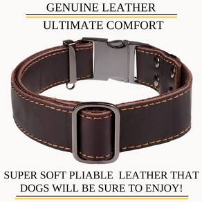 - Coleira de couro de qualidade premium: Feita com amor pelo seu amigo de quatro patas em mente, esta coleira ajustável é projetada para raças grandes a extragrande. Feita de couro de alta qualidade, inclui uma fivela de metal resistente, um anel deslizante conveniente para etiquetas de identificação e um anel em D de aço para facilitar a fixação da coleira.
