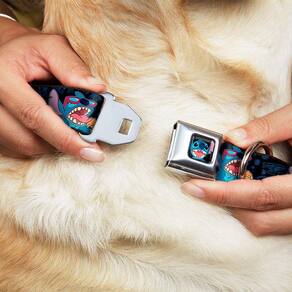 - Modelo: coleira para cães SeatBelt — Stitch Snacking Poses em preto/azul — 1,5" de largura — Serve para pescoço de 13-18" — Pequena